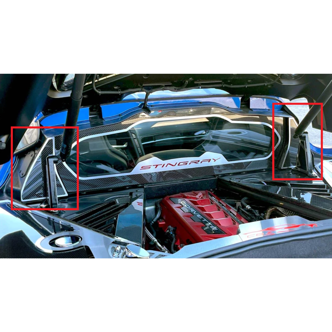2020-2026 C8 Corvette Coupe Rear Window Side Accents - Carbon Fiber w/ Brushed Trim