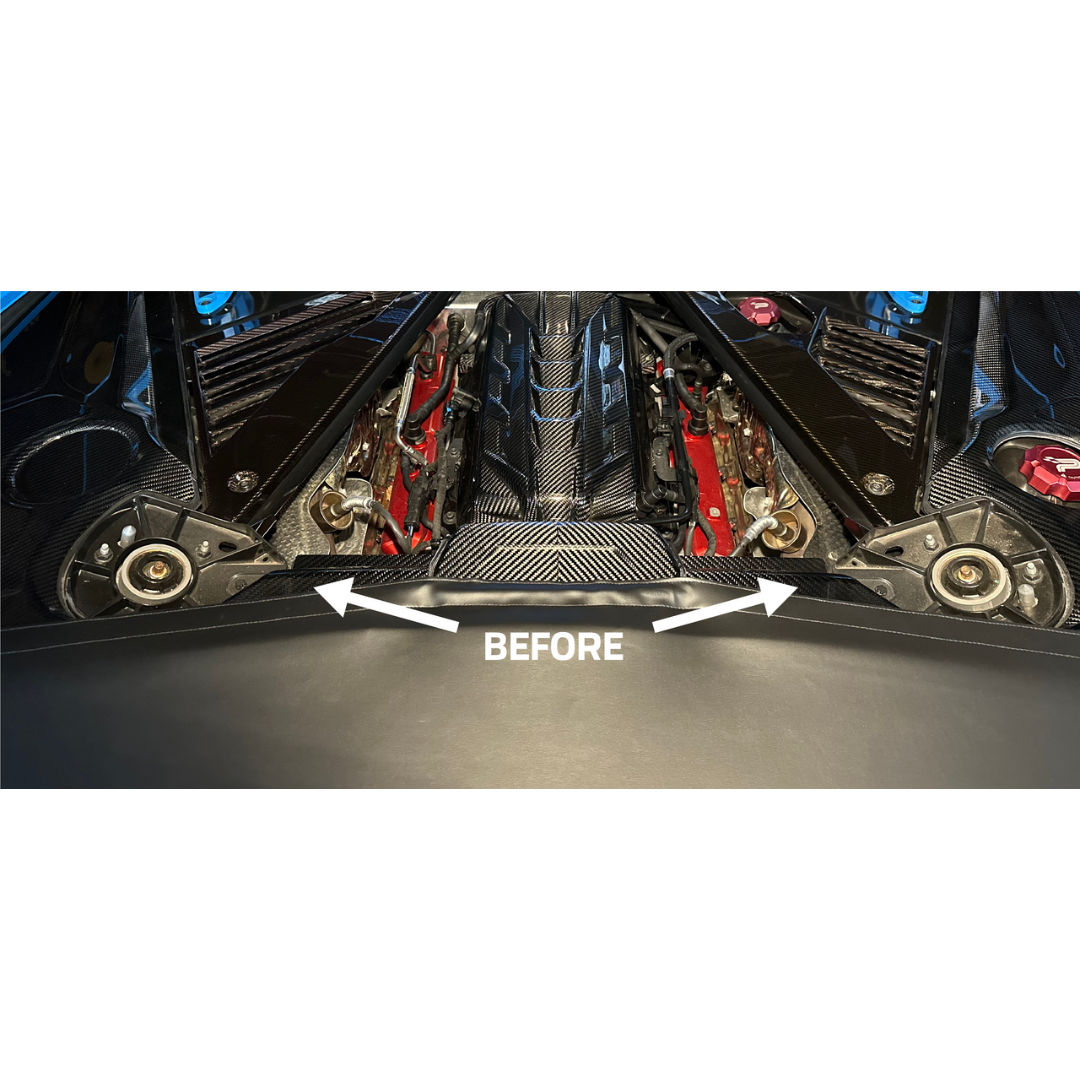 Upgrade the style of your C8 engine bay with these painted C8 Corvette Carbon Fiber Rear Strut Covers.