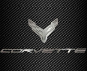 2020-2024 C8 Corvette - Stainless Hood Panel Badge Flag Logo and Corvette Font Style | Stainless Steel