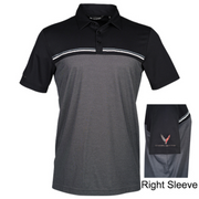 The three-button placket with dyed-to-match buttons adds a refined touch, while the subtle black and dark heather grey colorway ensures versatility for any occasion. Whether you're hitting the golf course or enjoying a casual outing, this polo showcases your Corvette pride with timeless style.