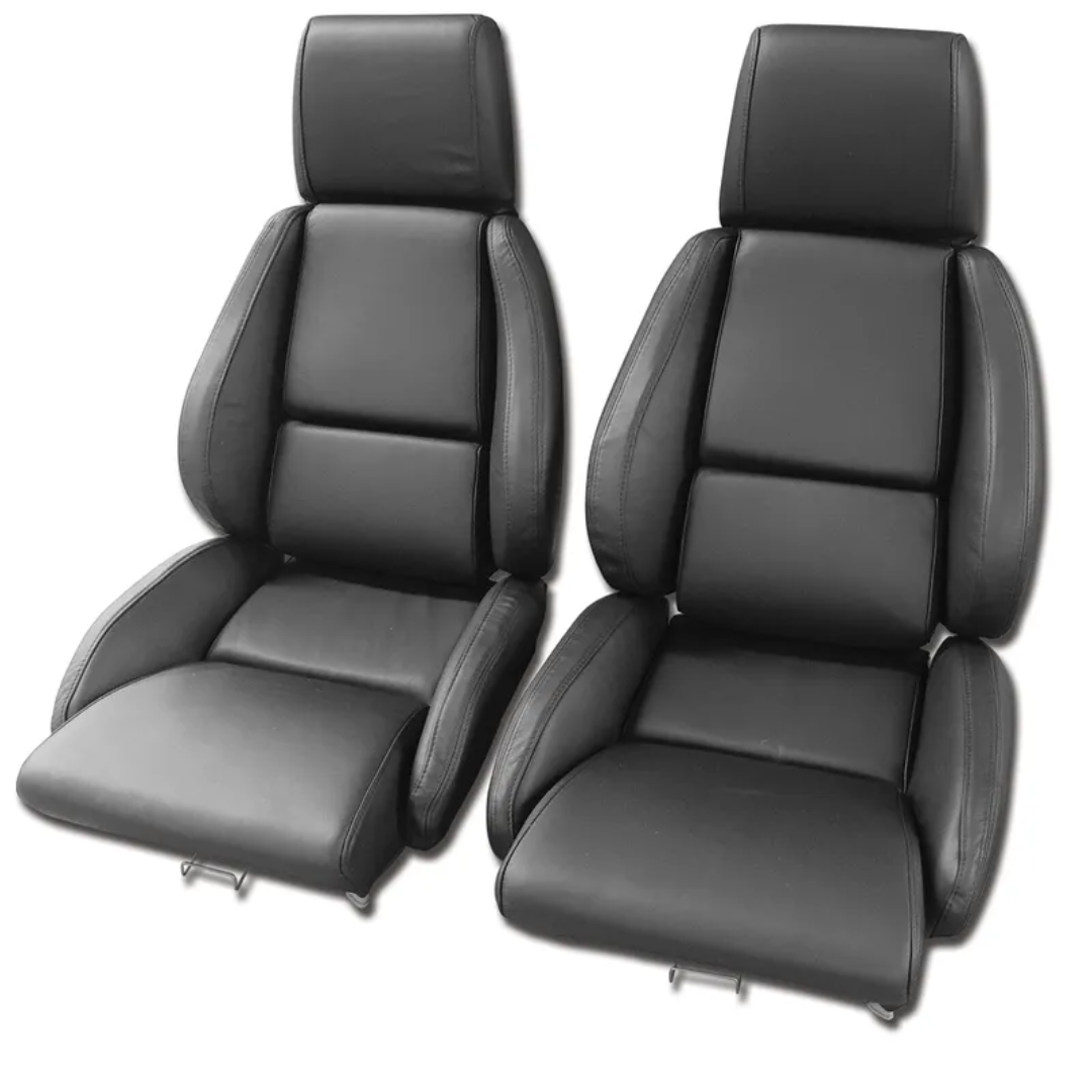 Enhance your C4 Corvette’s interior with this black standard leather seat upholstery, professionally mounted on new foam and ready for installation. Designed to replicate the original look and feel of factory seating, this kit provides the perfect combination of comfort, durability, and authentic styling — all with no perforations for a smooth, classic appearance.