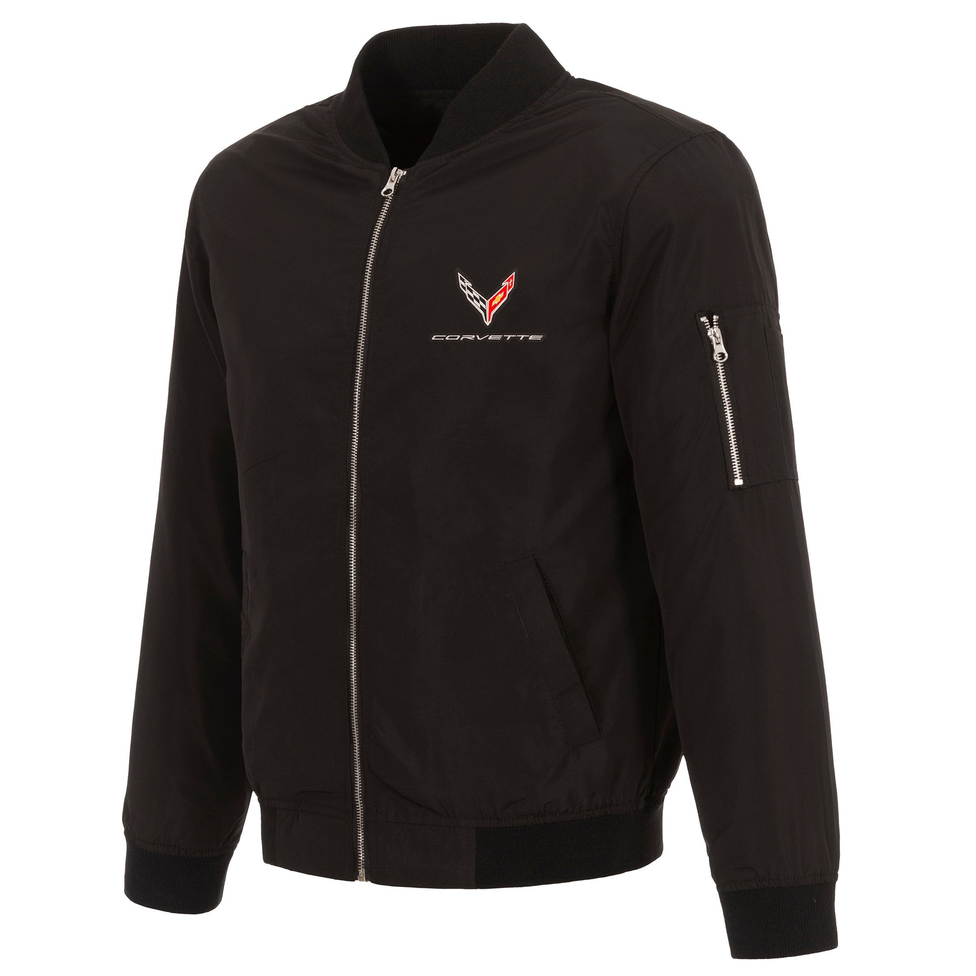 Color/Design: Black nylon bomber jacket with Corvette C8 branding