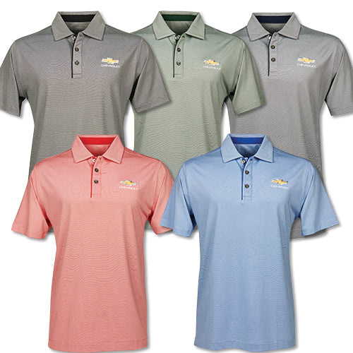 Stay cool and look your best with this Men's Chevrolet Gold Bowtie Micro Stripe Polo.