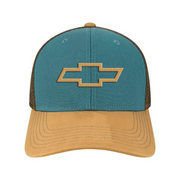 This stylish cap features a bold teal color and an embroidered Chevrolet Bowtie logo across the front.