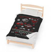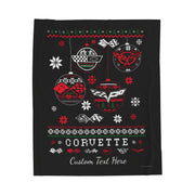 Corvette Ugly Sweater Christmas Personalized Velveteen Plush Blanket - BLACK