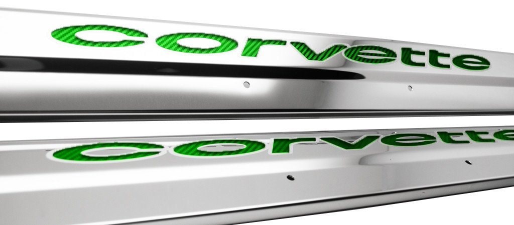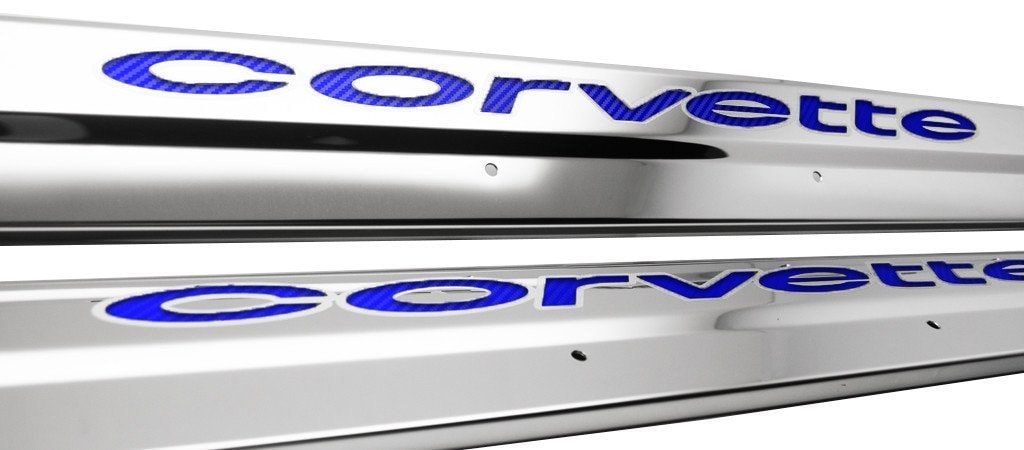 C3 Corvette Doorsills Polished Stainless w/ Colored Vinyl Inlay 2Pc 1978-1982