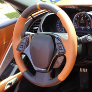 Our Chevrolet Corvette C7 steering wheel cover reupholsters both rim and spokes, unlike some of competing products. Makes your Chevrolet Corvette C7 steering wheel look better than new! Hand made from finest Italian leather, fits like original equipment..