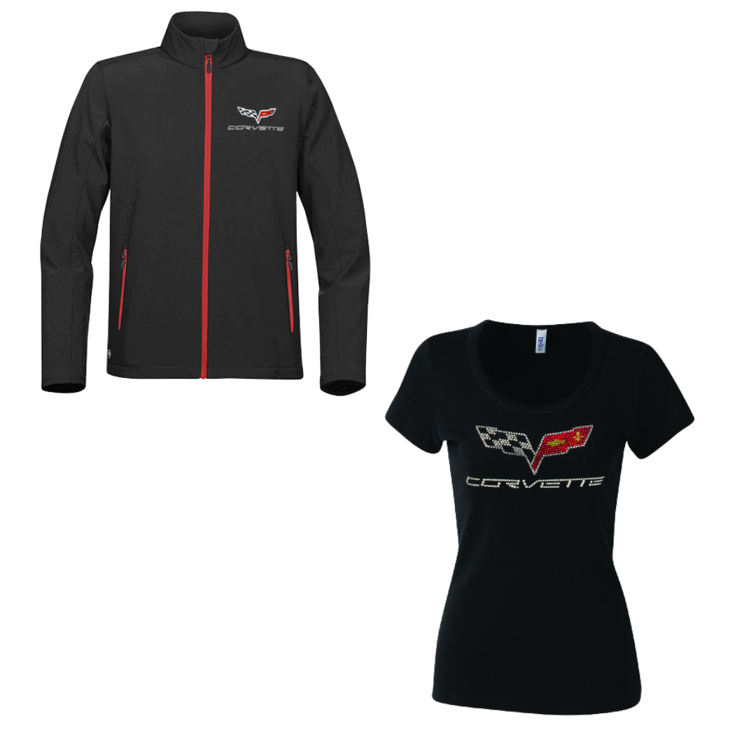 C6 Corvette His & Hers Bundle – Ladies Rhinestone Tee & Men’s Matrix Jacket