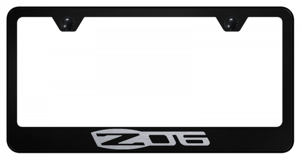 - Add style to the license plate on your C5-C7 Z06 Corvette with this License Plate Frame w/ Laser Etched Z06 Logo that comes with 2 finish options. The frame is a standard frame design with a wide bottom, which spans the length of the lower edge of the frame. It comes with a crisp, laser etched Z06 lettering in black. This is made in the USA from quality, precise workmanship and from the finest materials.