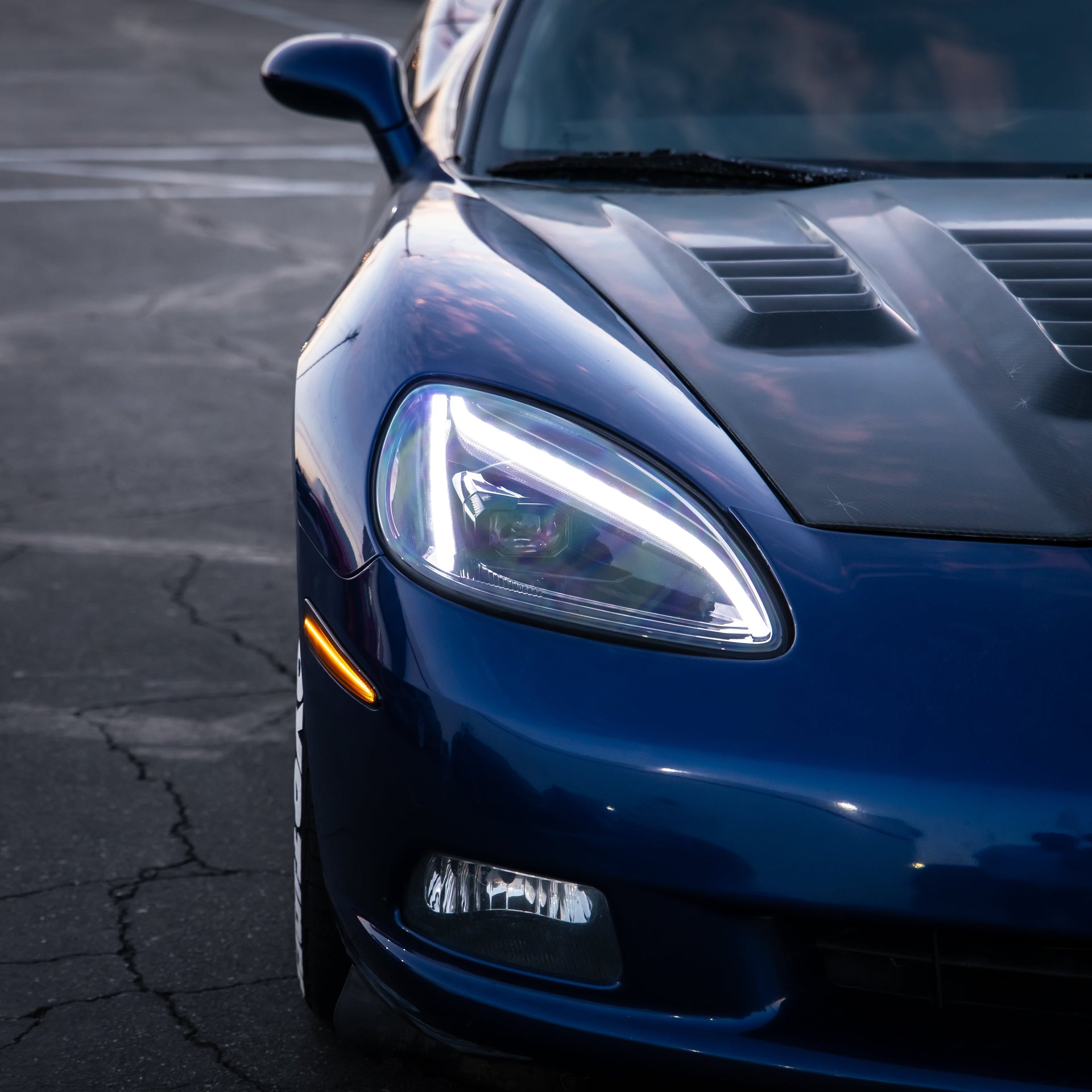2005-2013 Corvette C6 Projector LED Headlights C8 Style Amber Sequential Turn Signals
