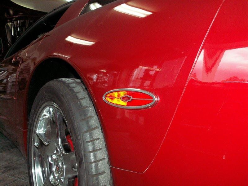 Dress up your Corvette with our Brushed or Polished - Stainless Steel, Rear Side Marker Light Trim with Chevy Bowtie emblem. These trim pieces are designed to fit all 1997-2004 Corvettes on the rear side marker light and add a clean stylish look to your Corvette exterior.