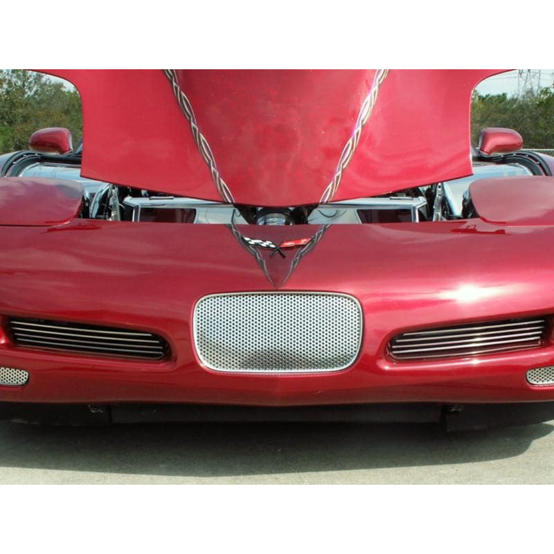 C5 Corvette Front Tag-Back Plate - Perforated Polished Stainless Steel
