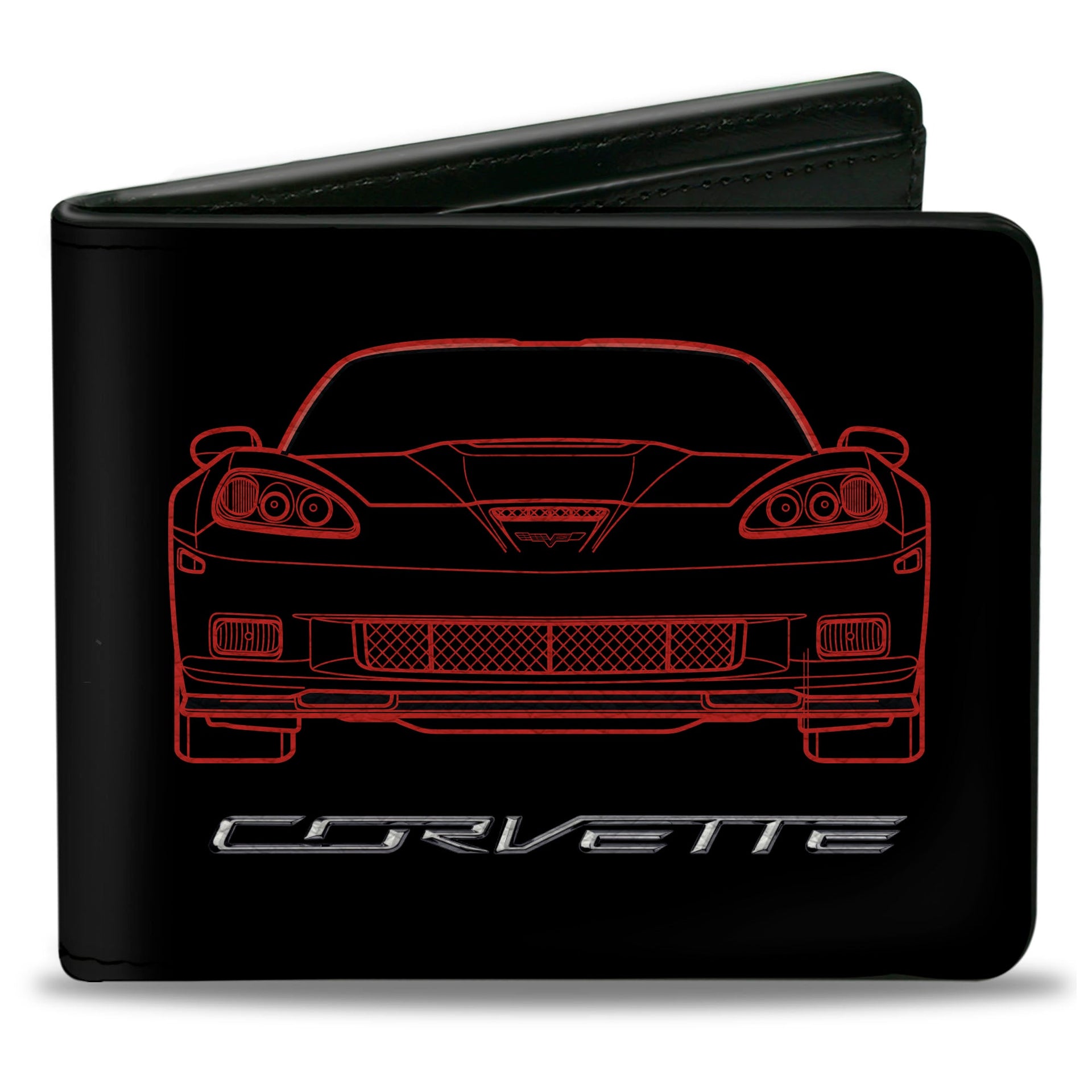 Bi-Fold Wallet - C6 Frontview + Rearview Blueprints Black Red