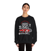 Celebrate the thrill of the drive and a century of American adventure with this Legends of the Road cotton blend sweatshirt, commemorating the 100th anniversary of Route 66. Featuring a classic C1 Corvette in vibrant red, set against the iconic Route 66 shield and highway signs, this sweatshirt is a true statement piece for any enthusiast. The bold artwork captures the spirit of the open road and the legacy of Route 66, making it perfect for cool, crisp days. This sweatshirt offers a classic fit and tear-away label for comfort. Ideal for the Corvette fan or as a special treat, this sweatshirt exudes a sporty and vintage vibe, making it a perfect addition to any wardrobe. Perfect for wearing during car shows, race events, or as a gift for car enthusiast.