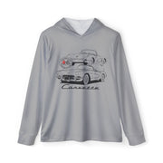 Celebrate the thrill of the drive with this Legends of the Road hooded performance long sleeve tee, featuring a striking C1 Corvette silhouette design. The artwork showcases both the front and rear views of the classic C1 Corvette in a sleek, monochrome style, accented by the iconic Corvette emblem and script. This shirt is a true statement piece for any enthusiast’s wardrobe. Crafted from lightweight, moisture-wicking performance fabric, this tee is perfect for cool, crisp days and active lifestyles. The athletic fit, attached hood, and long sleeves provide comfort and coverage whether you’re at a car show, race event, or enjoying a casual day out. Ideal for the Corvette fan or as a special treat, this shirt exudes a sporty and vintage vibe, making it a perfect addition to any collection.