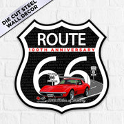 C3 Corvette Route 66 100th Anniversary Die-Cut Shield – Red Convertible Edition-Available in 2 Sizes