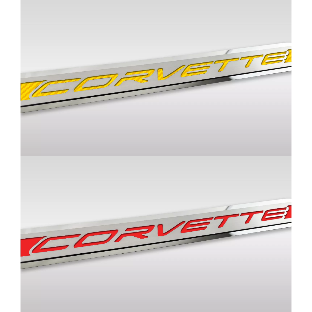 CORVETTE C8 DOOR PROP POLISHED/BRUSHED STAINLESS 'CORVETTE' - PASSENGER SIDE ONLY | CHOOSE INLAY