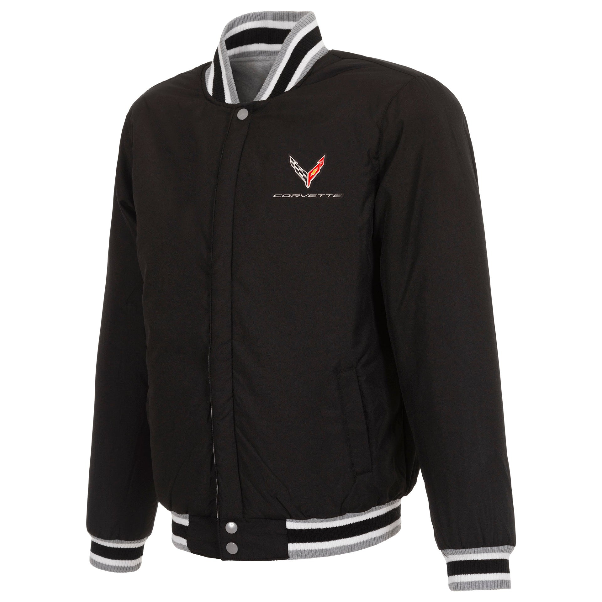 Traditional styling details, including a snap-front closure and rib knit collar, cuffs, and waistband, give this jacket a timeless appeal. Proudly assembled in the USA, it’s a must-have for Corvette enthusiasts who want comfort, quality, and style.
