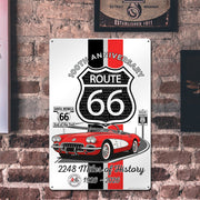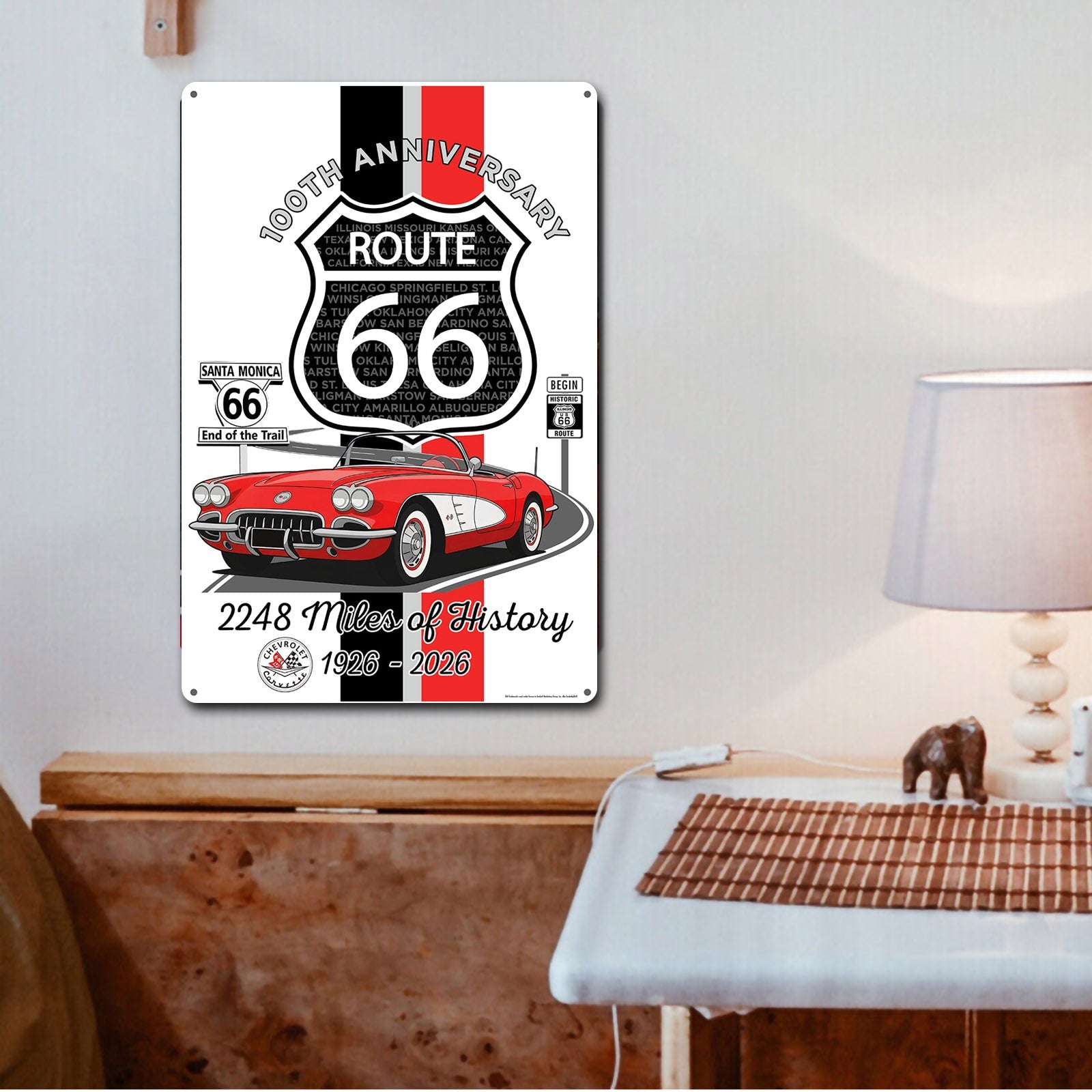 Route 66 100th Anniversary 12x18 Metal Sign – Red & White Corvette Edition