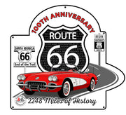 Route 66 100th Anniversary Metal Sign – Red C1 Corvette Edition- Available in 2 Sizes