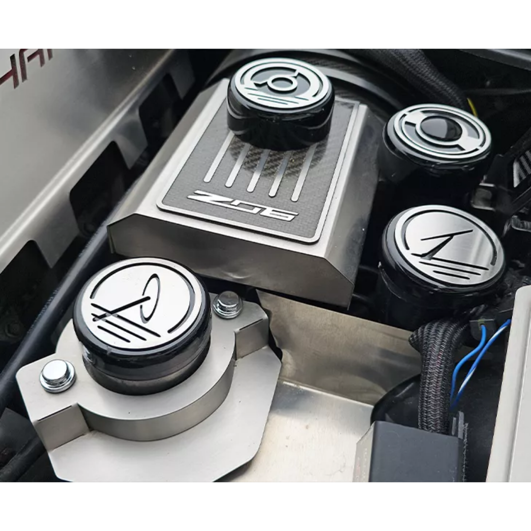 Corvette C7 Executive Series Fluid Cap Covers Black Caps with Brushed tops 5Pc Set | Automatic Transmission