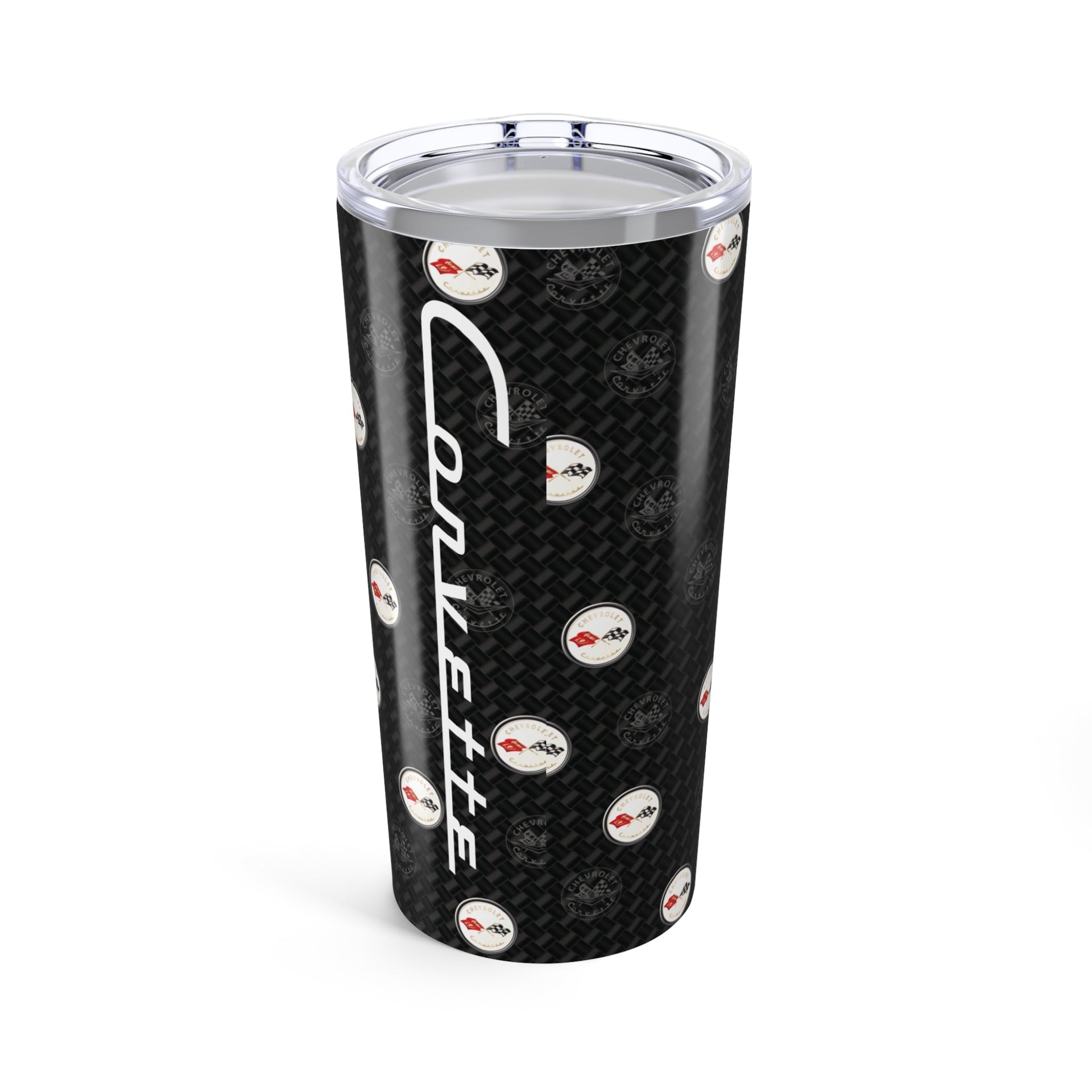 - Glossy carbon-pattern finish with full-color Corvette C1 logos.