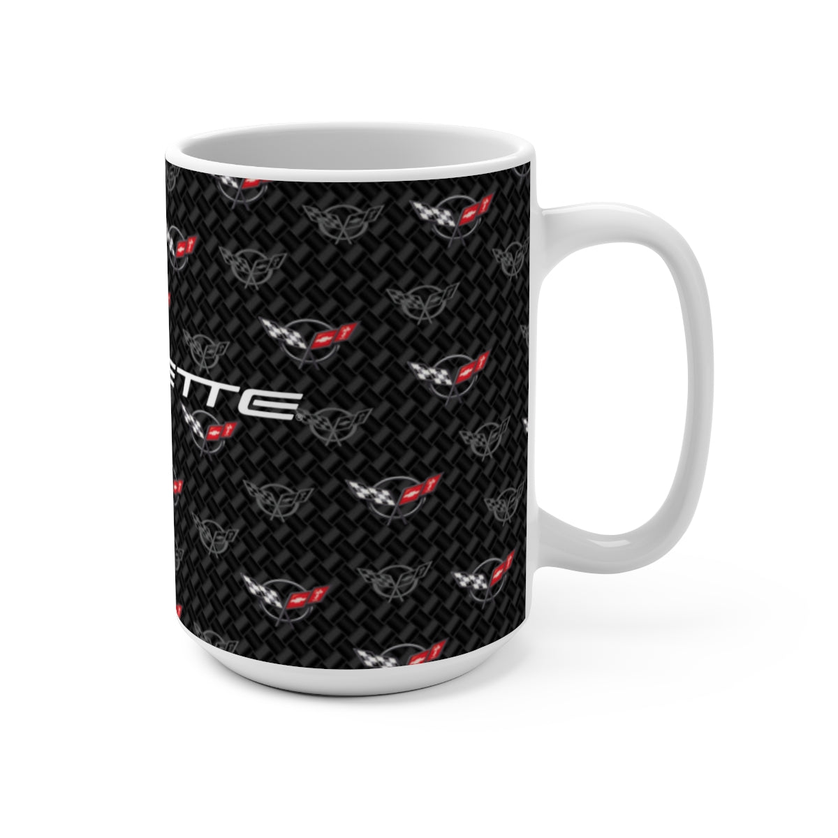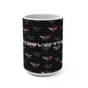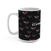 Corvette C5 15oz Ceramic Mug – Corvette Script & C5 Logos on Carbon Background