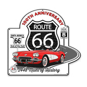 Route 66 100th Anniversary Metal Sign – Red C1 Corvette Edition- Available in 2 Sizes