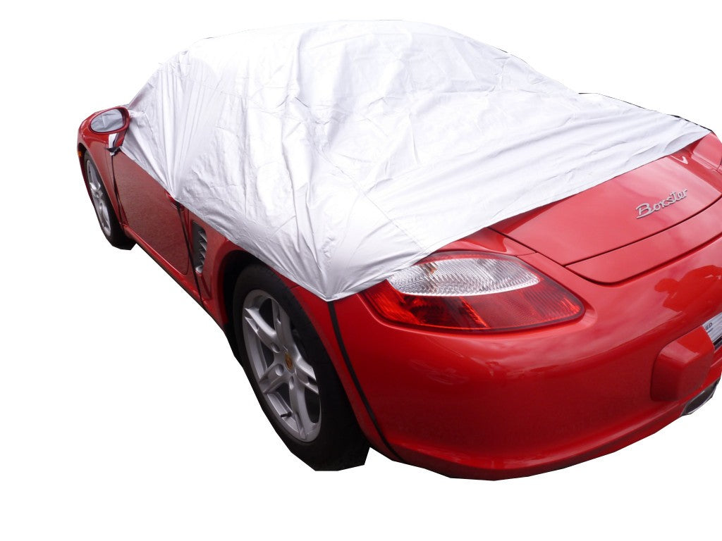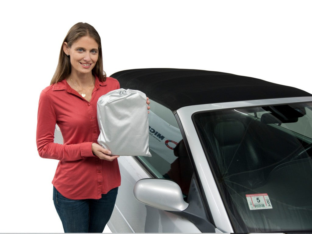 MCarCovers exclusive Top Cover has been designed to protect convertible tops and act as a full-car Sun Shade and Snow Shade for select Convertibles, Coupes, and Sedans. Our Top Cover is extremely water resistant and made to easily slip on and off your vehicle. Designed to cover and protect convertible tops when the top is up, our cover goes over the windshield (acting as a sunshade too) and covers the whole top fabric and rear window. Silver Colored Woven Polyester Fabric Material (150 threads per sq. inch). Coated underside for a soft and nonabrasive surface for clear coat finishes. Packs small, extremely lightweight and extremely protective. Practically waterproof, yet completely breathable. This incredible material, our Top Covers provide excellent protection for your vehicle against the sun and UV rays, rain, snow, dust, leaves, tree sap, and bird droppings. Check out our Top Cover YouTube Video! See all the amazing features of the Patent Pending MCarCovers Product. Our Top Covers ship the same business days from our closest warehouse and usually arrive in two days. Free fabric swatches available.