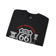 Celebrate the thrill of the drive and a century of American adventure with this Legends of the Road cotton blend sweatshirt, commemorating the 100th anniversary of Route 66. Featuring a classic C1 Corvette in vibrant red, set against the iconic Route 66 shield and highway signs, this sweatshirt is a true statement piece for any enthusiast. The bold artwork captures the spirit of the open road and the legacy of Route 66, making it perfect for cool, crisp days. This sweatshirt offers a classic fit and tear-away label for comfort. Ideal for the Corvette fan or as a special treat, this sweatshirt exudes a sporty and vintage vibe, making it a perfect addition to any wardrobe. Perfect for wearing during car shows, race events, or as a gift for car enthusiast.