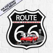 C2 Corvette Route 66 100th Anniversary Die-Cut Shield – Red Convertible Edition-Available in 2 Sizes